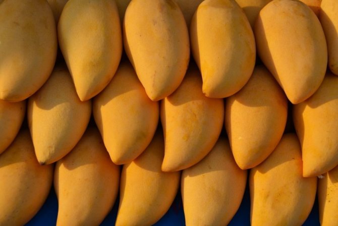 Мякоть манго содержит незаменимые аминокислоты, чем более она оранжевая, тем больше каротина в ней.