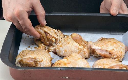 Для приготовления можно использовать любые части курицы, а мы воспользуемся куриными бедрышками. Мясо у них не сухое, к тому же покрыто кожицей. Это сохранит сок внутри кусочка и даст возможность покрыться мясу красивой хрустящей румяной корочкой.