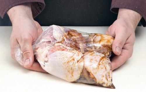 - Переложите продукт в чашу. Залейте маринадом на 5 часов. Состав маринада: мед, соевый соус, специи по вкусу.