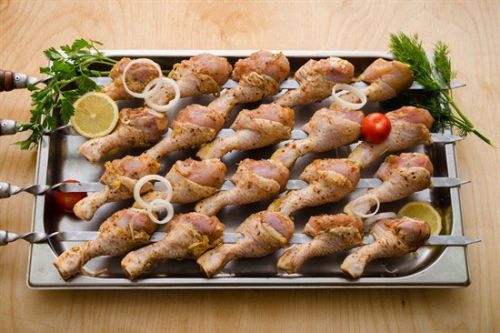 Основная проблема, когда готовится шашлык из окорочков – его нанизывание. Эти куриные «запчасти» довольно тяжелы, а мясо слишком нежное и разрывается шампурами. Есть три выхода из положения: