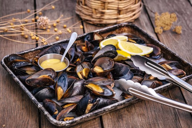 Для диетического стола больше подходят запеченные мидии, которые покупают в створках.