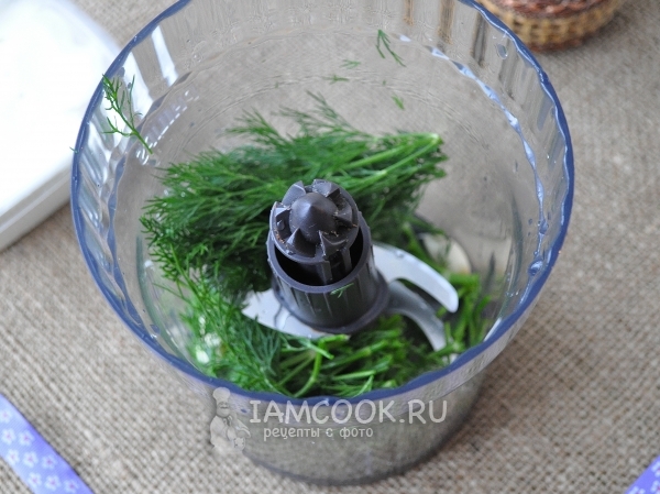 Укроп и чеснок поместим в чашу измельчителя и измельчим.