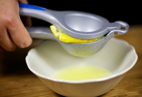 В тарелочку отожмем сок из лимона.
