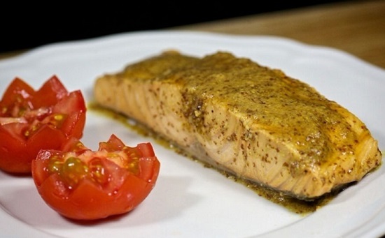 . Возможно использовать и мороженную рыбу. В таком случае нужно её разморозить в нижних отделах холодильника в течение всей ночи.. Не желательно размораживать рыбу при комнатной температуре в особенности в жаркое время года. В тепле быстро размножаются вредные микроорганизмы, использовать такую рыбу просто опасно.. Подавать лосося идеально с белым вином.. Придать рыбе вкусовые оттенки помогут разнообразные пряности: базилик, чабрец, фенхель — дополнят душистой свежестью, куркума и паприка — обновление и необычный привкус, молотая лаврушка, сельдерей и душистый перчик — усилители вкуса морской рыбки.