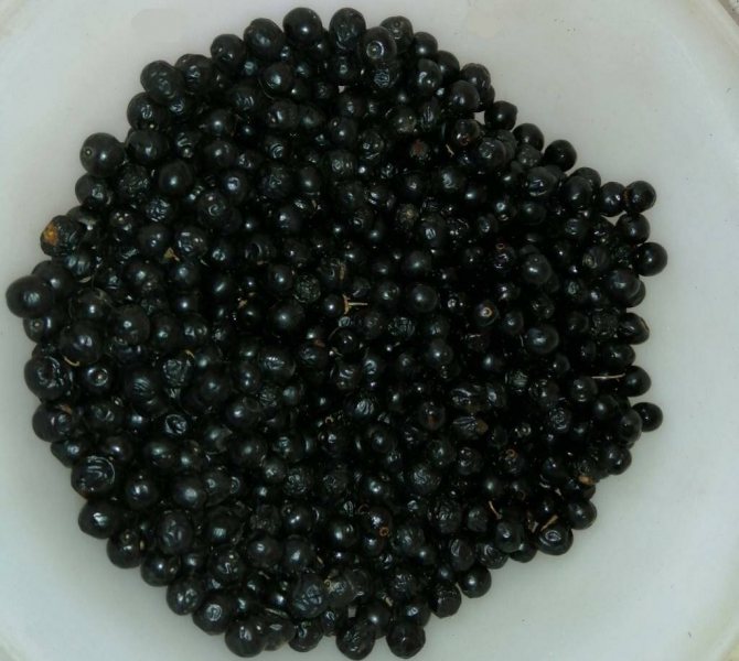 Косточковые плоды величиной с горошину, круглые, морщинистые. Незрелые костянки красного цвета, спелые – блестящего черного. Поспевают поздним летом и с удовольствием поедаются птицами, которые распространяют семена.