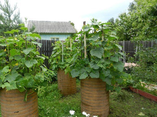 Применение старых бочек становится популярным способом выращивания многих овощей, которые растут крупными кустами. Так сажают, например, дыни, арбузы, тыквы, даже клубнику. При этом экономится место в огороде (бочку можно поставить где угодно), а растения находятся в хорошо прогреваемой почве. Любую бочку, но лучше железную, темноокрашенную и дырявую набивают наполовину всяким органическим мусором, а выше помещают плодородную почву, хорошо сдобренную перегноем. Весной поливают содержимое настоем коровяка и прикрывают плёнкой для разогрева.