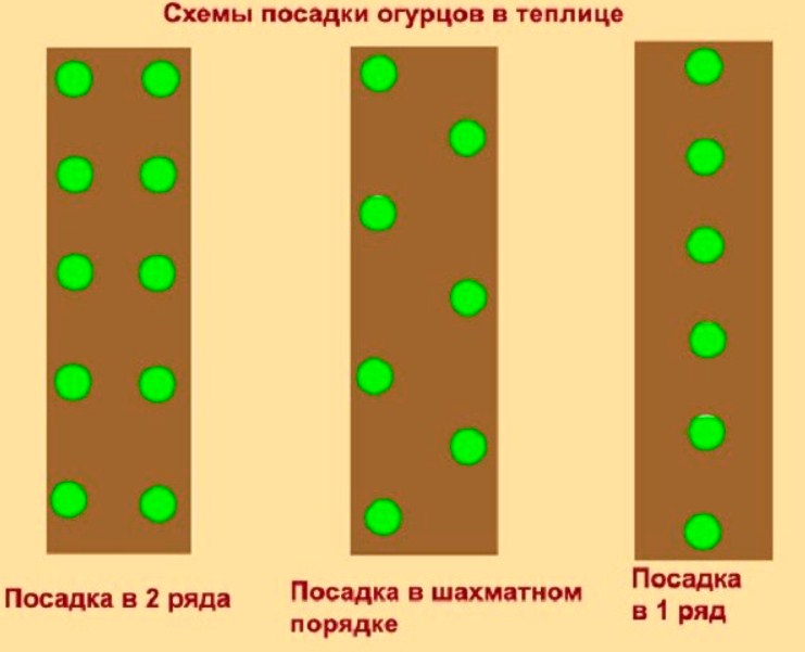 Горизонтальная схема посадки подходит для открытого грунта. Так можно высаживать кустовые, детерминантные сорта, рост которых ограничен. Далее будут описаны основные схемы посадки огурцов, которыми пользуются опытные огородники