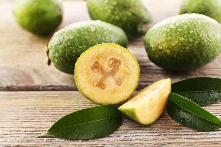 На ощупь фейхоа должен быть упругим или твердым. Упругость говорит о том, что продукт не перезрел и готов к употреблению. Твердые ягоды, скорее всего еще не дозрели