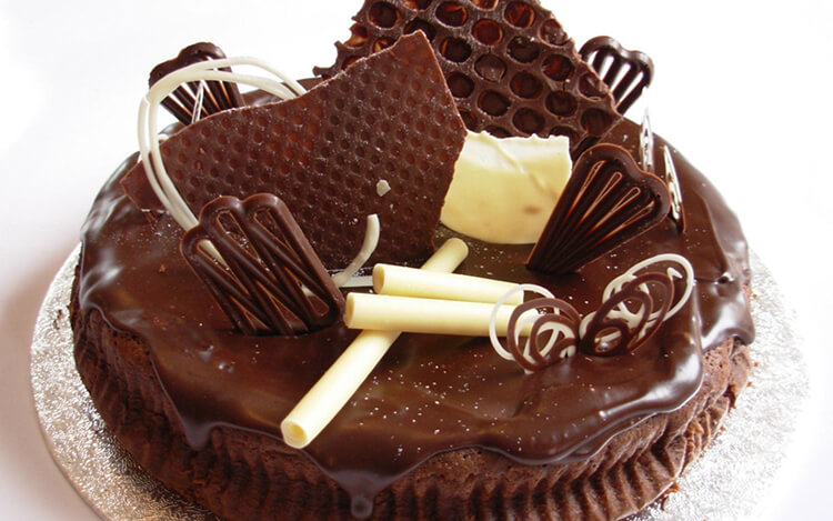 Оформление шоколадом считается классическим украшением для тортов. Этот ингредиент прекрасно сочетается с бисквитами, суфле, муссом, слоёным тестом и различными кремами. Преимущества шоколада заключаются в том, что растопленному ему можно придать любую всевозможную форму, а когда шоколад застынет, то не потрескается и не растечётся. Для украшения тортов можно использовать любо шоколад – чёрный, белый, молочный, пористый.