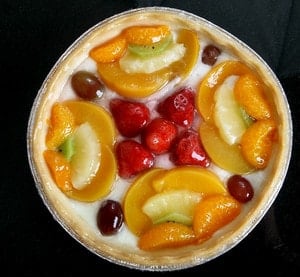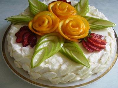 Ананас и киви не дают застыть желе, поэтому если украшение из фруктов планируется заливать желе, их следует обдать кипятком перед оформлением. Если для украшения сладких блюд используются консервированные фрукты, с них обязательно должна стечь жидкость.