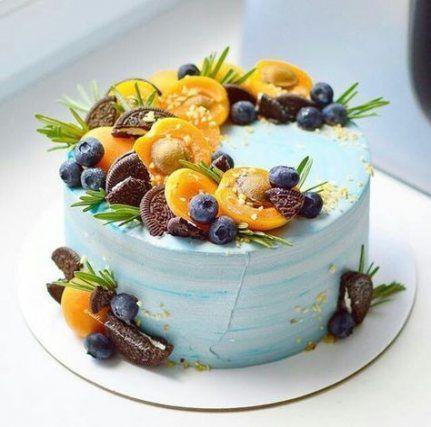 Тем не менее, если у вас есть большой опыт и навыки составления композиций, то можете попробовать оформить торт голубикой и персиками или абрикосами.