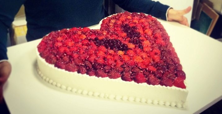 Для любителей оригинальных форм подойдет свадебный десерт в виде сердца, изюминкой которого станет украшение ягодами. Обычно для праздников, связанных с проявлением чувств, выбирают клубнику, которая обрамляется белковым кремом, но можно взять взбитые сливки. Фрукты могут содержаться и в начинке, однако их должно быть немного, чтобы не сделать десерт приторным. Отличным дополнением декора натуральных ягод станут листочки мяты, которые размещаются сверху на изделии, разбавляя красную гамму десерта.