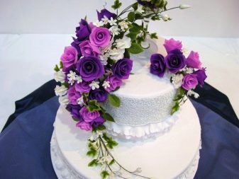 Многоярусные свадебные торты могут иметь совершенно разный вариант декора. Один и тот же десерт можно украсить при помощи фруктов, что создаст летнее и яркое настроение и придаст вкусу особые нотки. Если хочется сделать очень нежный вариант изделия, можно использовать кокосовую стружку и клубнику. Наличие небольших цветочков позволяет добиться романтического дизайна, а применение шоколада помогает понять характер жениха и невесты, который можно описать как взрывной, страстный, сладкий и пьянящий.