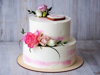 Наиболее традиционным считается свадебный торт, выполненный в белой цветовой гамме и украшенный ягодами. В случае большого торжества стоит заказывать конструкцию в несколько ярусов, а для маленького пиршества хватит и одноярусного варианта. Торт может быть покрыт белой мастикой, на которой сделаны узоры белковым или масляным кремом, или же все изделие полностью покрыто кремом. Выбор варианта внешнего вида и его составляющих зависит только от желания, фантазии и вкусов новобрачных, которые воплотят они сами или же кондитер.