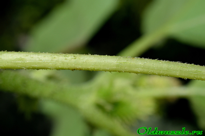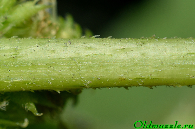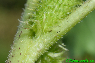 Стебель бороздчатый, с жёсткими щетинистыми волосками.