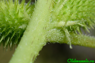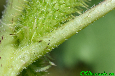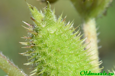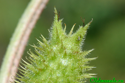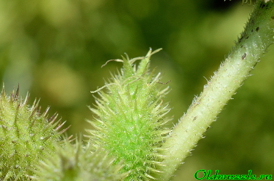 Обёртка пестичных цветков с жёсткими коническими шипами и желёзистым опушением.