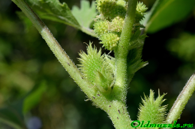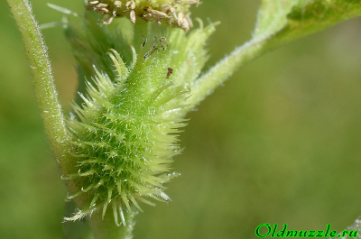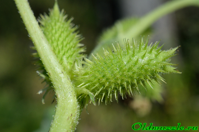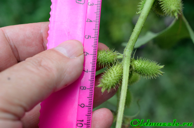 Это растение знакомо мне давным-давно, ещё с детства. Играя в зарослях, окружающих огороды, мы не раз видели колючие плоды, спрятанные под листьями. И даже название «Дурнишник» мне уже тогда было знакомо