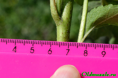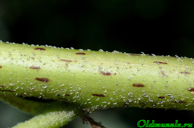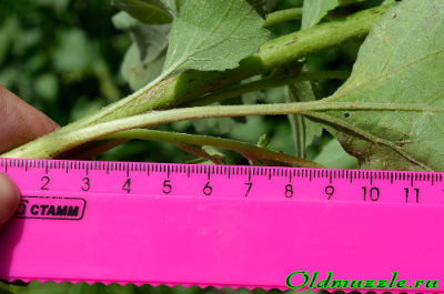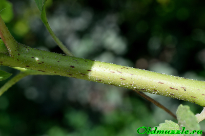 Стебель покрыт мелкими продолговатыми пурпурными пятнами.