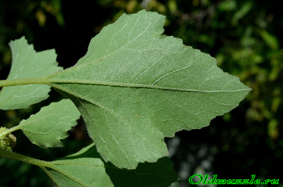 Обратная сторона листа с крупными, выдающимися жилками. Жилкование перистое.