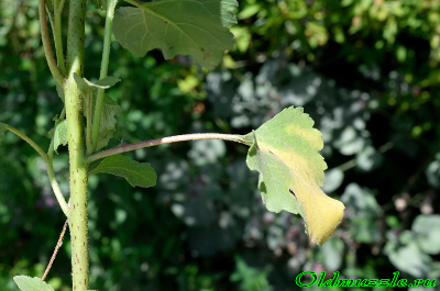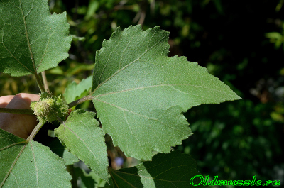Листья цельные, 3-5 лопастные, треугольные, сердцевидные или широкояйцевидные.