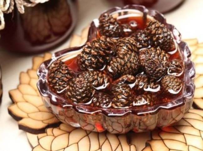 - Варенье из шишек сосны тонизирует и бодрит. Разведите две чайных ложечки лакомства в стакане фильтрованной воды, выпейте раствор, и усталость, а также апатия сразу пройдут.