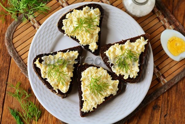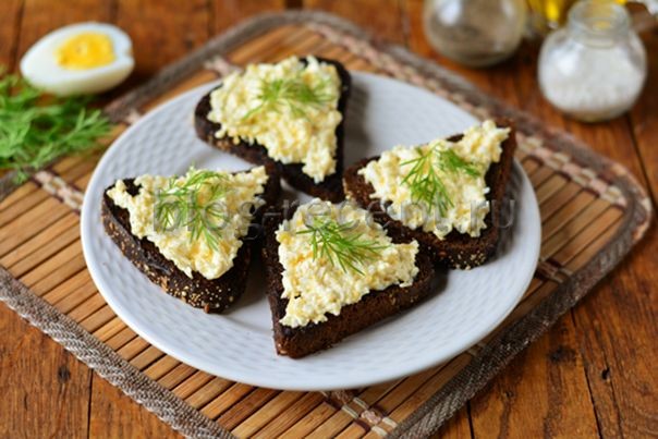 - Обжаренные ломтики смажем получившейся начинкой, слой делаем не тонкий, чтобы было сытно и вкусно.