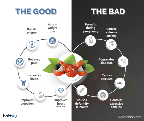 Еще в давние времена племенам индейцев стало известно о том, какой эффект дает экстракт гуараны, и какая польза и вред для человека может быть от ее семян. Согласно современным исследованиям, препарат или напиток, изготовленный на основе семян гуараны, может сделать любого человека крепче и выносливее. Присутствие компонента, аналогичного кофеину, наполняет организм жизненными силами, повышает тонус и работоспособность человека. В медицине гуарану нередко применяют как средство для лечения постоянных мигреней и головной боли. Ощутимая польза семян гуараны для организма отмечается при проблемах с пищеварительной системой и желудочно-кишечных расстройствах.