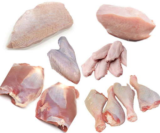 В продаже наших магазинов можно встретить несколько разновидностей индюшиного мяса, разделяющегося по частям тела птицы – филе (грудка), крылья, бедра, голень, а также субпродукты (печень, сердце).