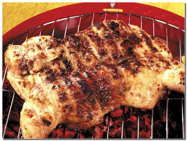 - при жарке грудку необходимо поливать выделившимся соком каждые 15-20 мин., это обеспечить формирование хрустящей корочки;