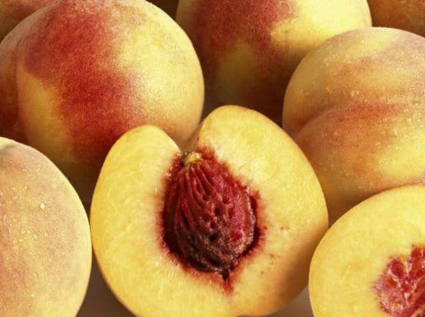 - Сорт «Сатурн». Это дерево начинает плодоносить довольно рано. Достигает большой высоты, приносит стабильный урожай, поспевающий ко второй декаде августа. Персик весом до 100 г имеет желтоватый оттенок и светло-розовый румянец по бокам.