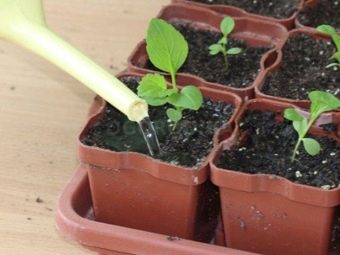 Когда появятся всходы, следует убрать пленку. Горшки должны находиться в хорошо освещенном месте, а всходы нужно регулярно поливать.