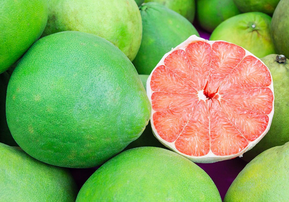 Существует 3 вида этих плодов, различных по цвету мякоти. Один из них – красный помело – фрукт овальной формы с кисловатым вкусом и приятной горчинкой в послевкусии. Его едят как грейпфрут, который и был получен в результате скрещивания этого сорта с апельсином. А еще есть сорта с розовой и белой мякотью, схожих по вкусу, но со своими нотками.