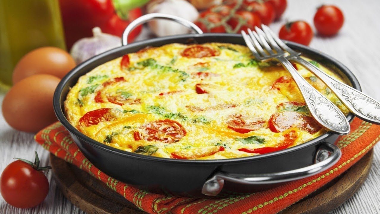 Овощи, мясо и фрукты нужно потушить несколько минут перед добавлением яичной смеси. Ведь яйца готовятся быстрее, чем остальные ингредиенты.