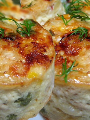 8. Разложите куриную суфлейную массу по смазанным растительным маслом формочкам и поставьте в разогретую духовку примерно на 25 минут.