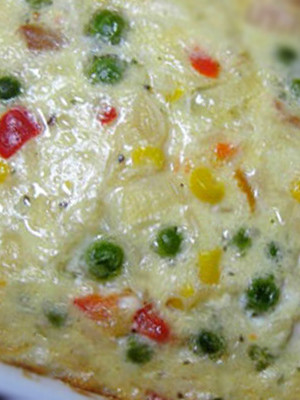 Для рецепта «Феерия цвета» выбирайте смесь овощей с разными контрастными цветами: морковь (оранжевый), горошек (зеленый), лук порей (белый), кукуруза (желтая), фасоль (коричневая) и т.п. Тогда в разрезе суфле будет похоже на россыпь конфетти. Это выглядит весело и позитивно, к тому же еще и очень обогащает куриное мясо полезными веществами и вкусом!