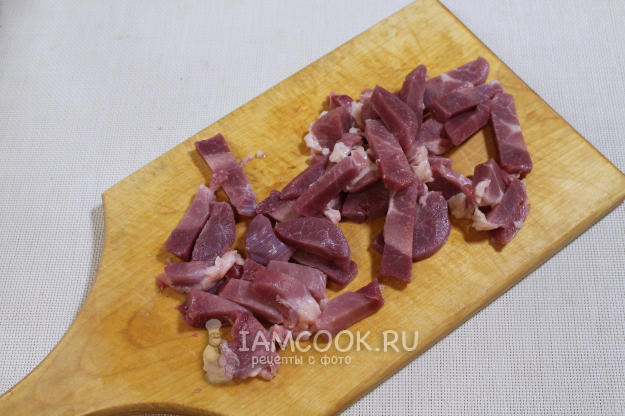 - Измельчить овощи в маленькие кубики, мясо порубить кусочками среднего размера.