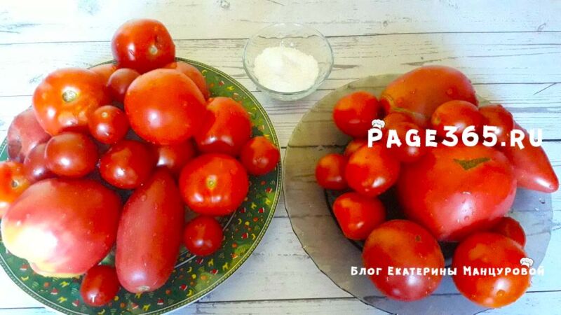 Итак, нам понадобится два вида помидор. Первые мы будем консервировать – они должны быть небольшие, аккуратные и плотные. Прекрасно подойдут засолочные сорта (сливка, например).