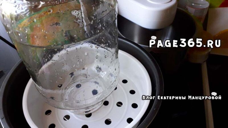 5. Банки и крышки простерилизуйте заранее удобным для вас способом. Я крышки кипячу в воде, а банки стерилизую, используя приставку для пароварки от мультиварки.