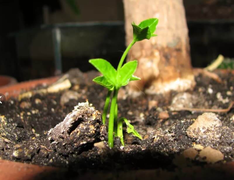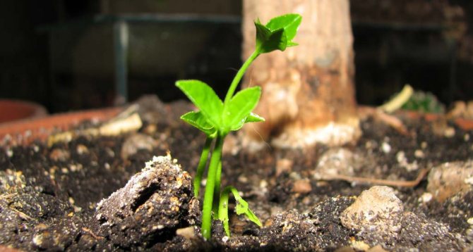 Через пару дней ткань снимают. Нужная температура для активного развития — до 28°С. Цитрус любит влагу, землю нельзя пересушивать. Ростки помело появляются через пару недель.