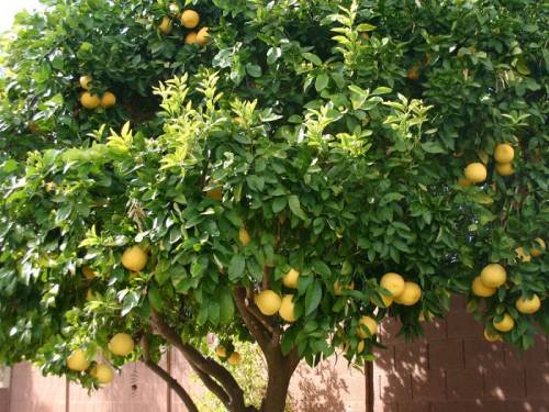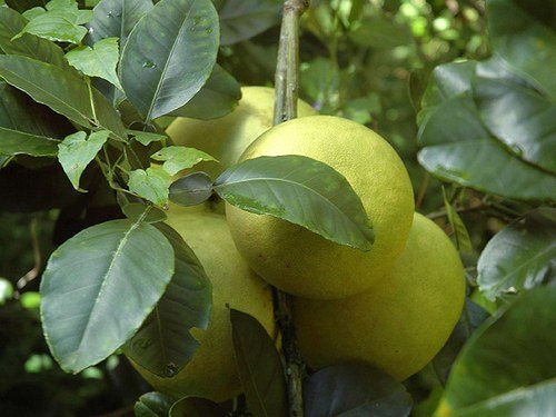 Помело — вечнозелёное дерево высотой до 15 м с шаровидной кроной.