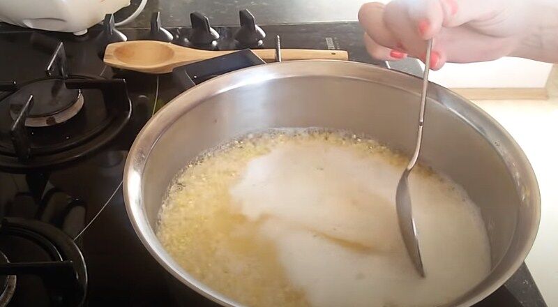 - Даже при большом желании получить именно сладкое кушанье, соль добавлять обязательно. Однако сахара нужно добавлять не менее трёх столовых ложек. Если каша предназначается ребёнку, то следует заменить сахарный песок сгущёнкой либо мёдом.