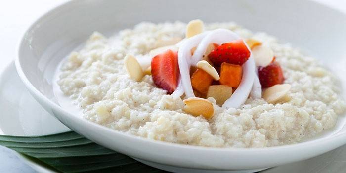 - Ребёнку, не достигшему пятилетнего возраста, рекомендуется подавать блюдо в жидкой консистенции. Это объясняется тем, что детский организм слабый и справится с процессом переваривания тяжёлой пищи он не сможет. А жидкий продукт с лёгкостью усваивается, обогащая организм всеми необходимыми полезными веществами. Гарнир для ребёнка требуется варить не менее получаса, а воду заменить молоком со средним жировым процентом. Перед подачей к столу, следует справить блюдо нежирными сливками либо сметаной. Так продукт получится более сливочным на вкус, что очень нравится большинству детей.
