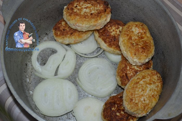 - Половником от мультиварки сформировать круглые котлеты.