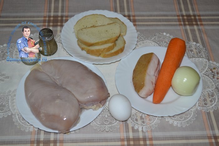 Компоненты для приготовления котлет из одной куриной грудки: