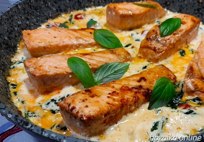 Лосось в сливочном соусе на сковороде
