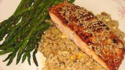 Подают такую рыбу с бурым или белым рисом.