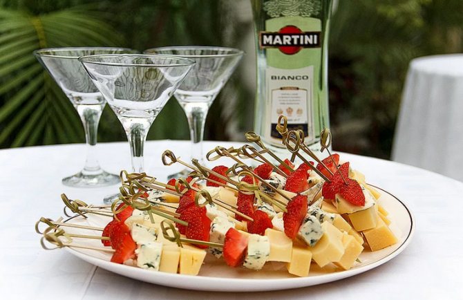 Как правильно пить мартини и с чем? Этот вопрос интересует многих. Считается, что данный напиток следует употреблять перед едой, как аперитив. Он является идеальным вариантом для всевозможных фуршетов и коктейльных вечеринок. Также неплохо мартини подходит и для романтического ужина. Изысканное крепленое вино с богатым ароматом и вкусом подойдет для тех собраний, где главным является не выпивка и еда, а живое общение.