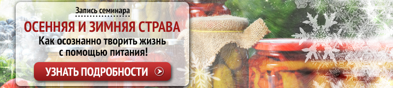 П.С. Как правильно питаться согласно годовому циклу, как с помощью питания сохранить своё здоровье, наладить взаимоотношения в семье, чтобы еда всегда была во благо и в радость об этом и не только вы узнаете на семинаре «Осенне-зимняя страва».