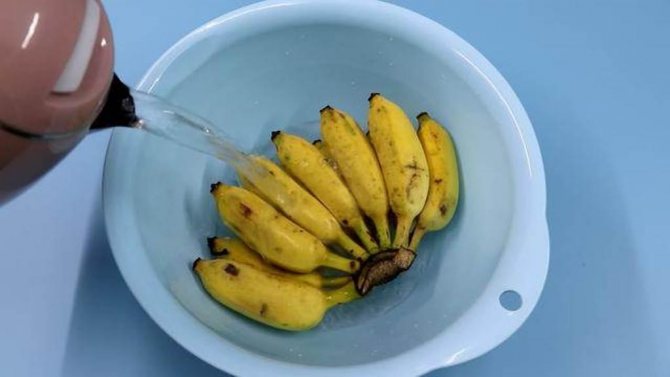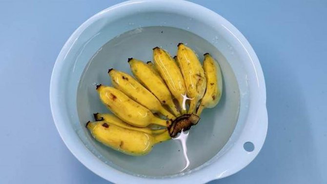 Этот фрукт трудно сохранить. Всем известно, что если подобные плоды хранятся в холодильнике менее половины дня, они обязательно почернеют и испортятся. Так как же нам хранить бананы, если мы не можем скушать все сразу? Прежде всего нам нужно промыть плод водой, лучше всего замочить на минуту или две, чтобы очистить созревающий слой на поверхности бананов.