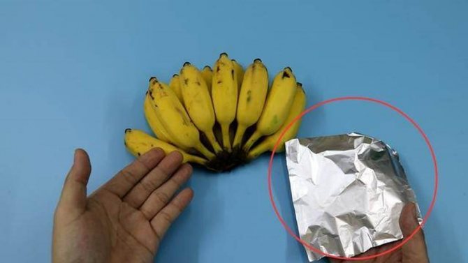Затем вам нужно найти кусок фольги и обернуть банановую «ручку». Зачем это? Этот факт связан с тем, что банановый стебель — это место, где выделяется наибольшее количество газа.